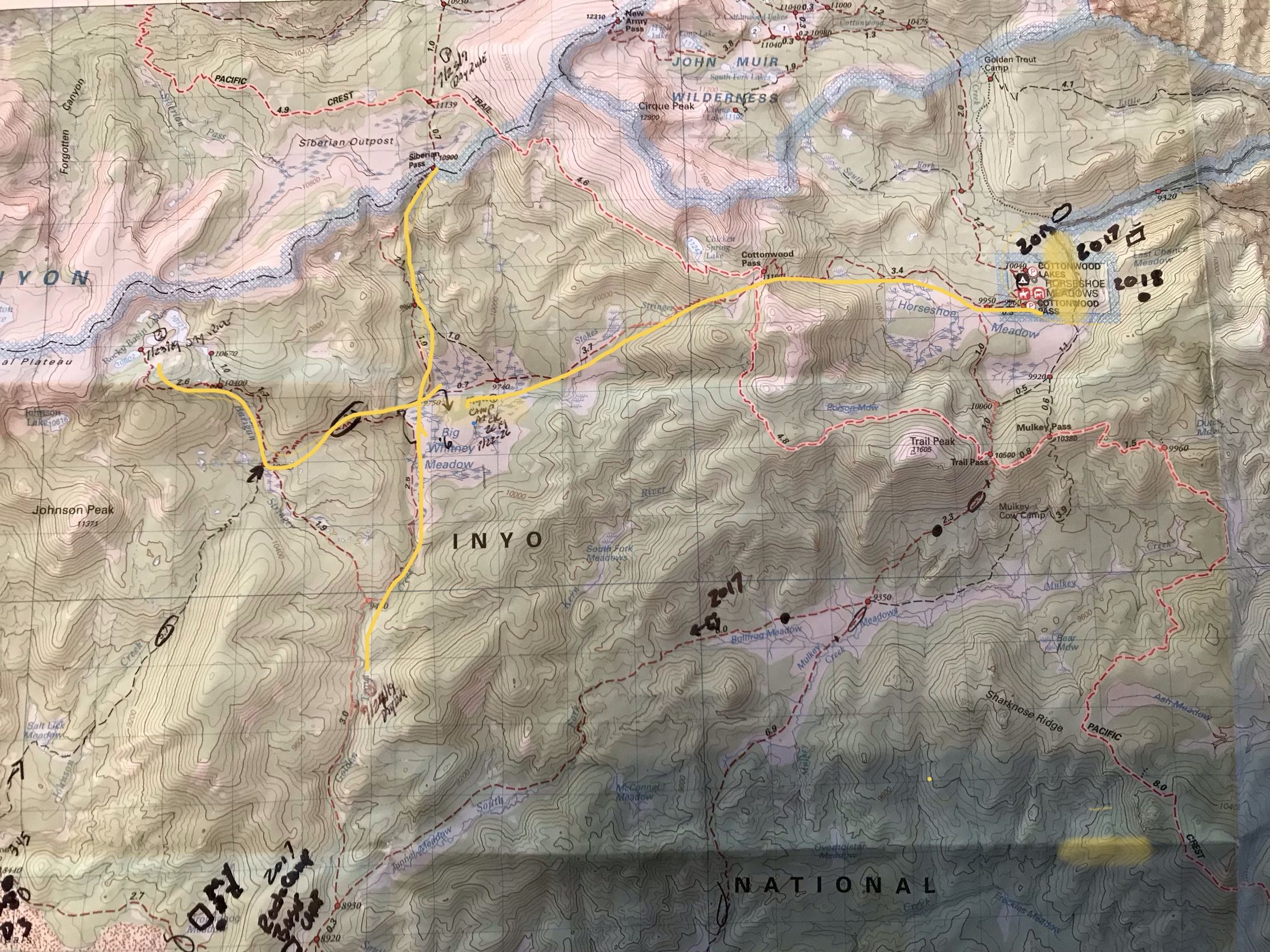 Start and end at Cottonwood Pack Station (at Horseshoe Meadows west of Lone Pine, CA)