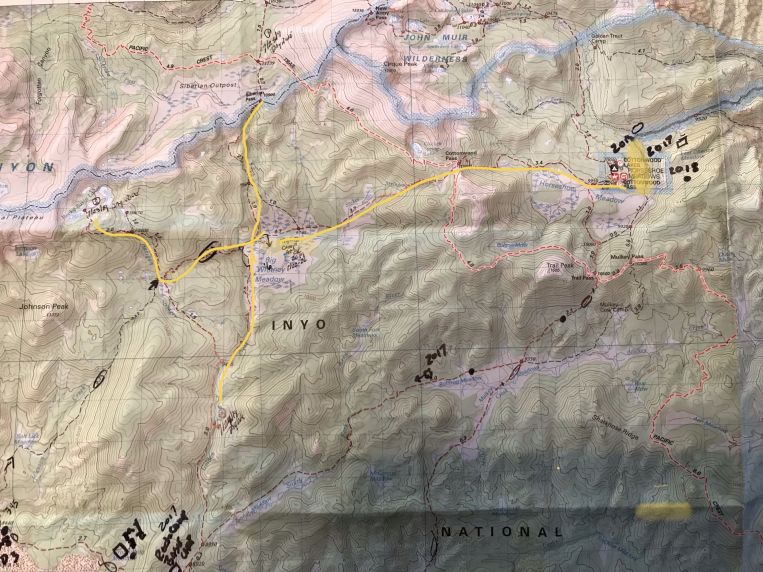 Day 1: Cottonwood Pack Station (Horseshoe Meadow Trailhead) to our base camp. (The specific campsite location will be dependent upon the ground conditions).